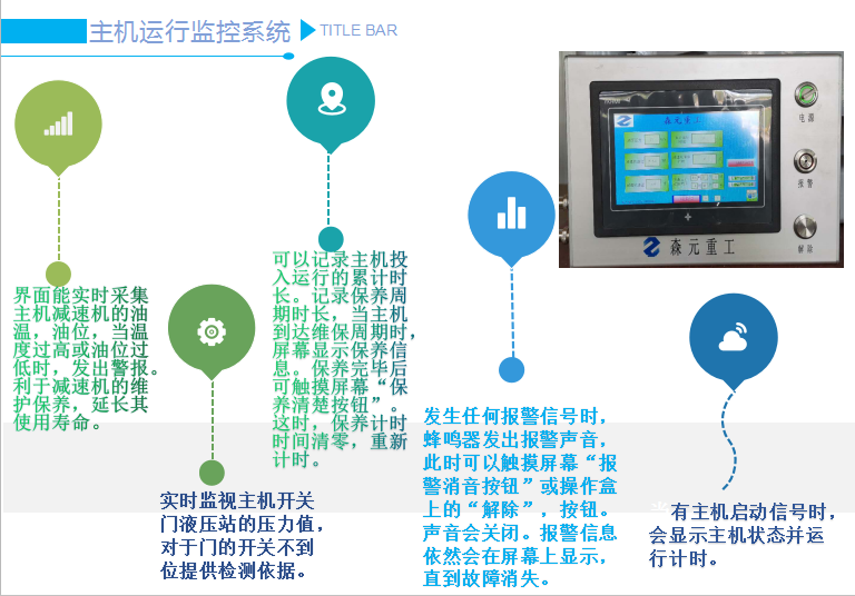 该界面可以实时采集主机减速器的油温和油位。温度过高或油位过低都会发出警报,方便减速机的保养并延长其使用寿命。