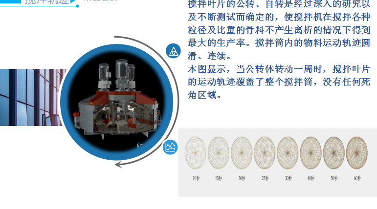 搅拌运动强,混合周期短,效率高,拌合料均匀性,高质量。