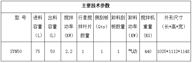 SYN50系列立轴行星搅拌机技术参数